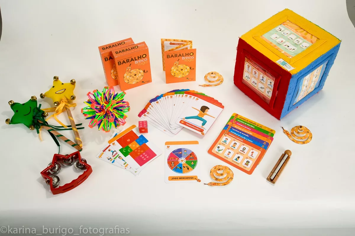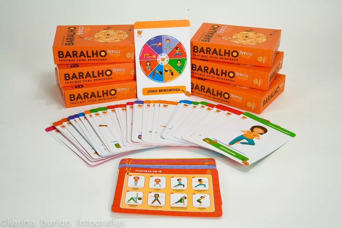 * Baralho BrincaYoga enviado para seu endereço com 68 cartas, tabuleiro, adesivos, cartas de meditação e respiração. Suas aulas se tornarão mais lúdicas e envolventes.